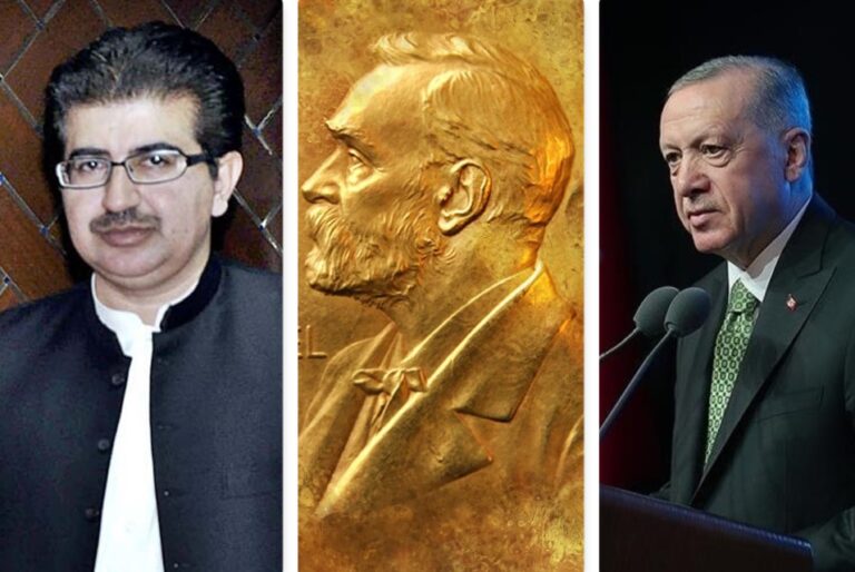 پاکستان پہلا ملک ہےجس نے اپنے برادر اور دوست ملک اور پاکستان کے خیر خواہ صدر رجب طیب ایردوان کو  نوبل امن ایوارڈ دلوانے کے لیے  بین الاقوامی سطح پر اپنی کوششوں کا آغاز کیا ہے اور صدر ایردوان کو یہ نوبل امن ایوارڈ دلوانے تک اپنی کوششوں کو جاری رکھنے  سے بھی آگاہ کیا ہے۔
