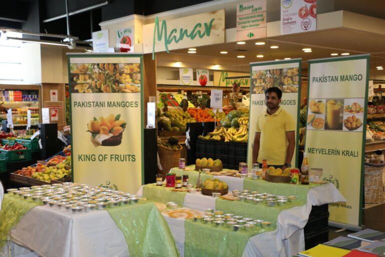 ترکیہ کے دارالحکومت انقرہ میں سفارتخانہ  پاکستان نے   منفرد اور خوشبوؤں سے معطر تقریب کا انعقاد کیا، جس نے ترک عوام کے ذوق اور ذائقے پر ایک ایسا اثر چھوڑا جو مدتوں یاد رکھا جائے گا۔ یہ مینگوز  کی نمائش اورترک عوام کو  مینگو کی لذت سے آشنا کرنے  کی  ایک تقریب تھی، جسے پاکستان کے سفارتخانے نے ترکیہ کی معروف سپر مارکیٹ چین کیرفورSA کے اشتراک سے ترتیب دیا۔ اس تقریب کا بنیادی مقصد ترک صارفین کو پاکستان کے مینگوز  کی وہ مٹھاس، خوشبو اور لذت دکھانا تھا جسے دنیا بھر بجا طور پر “پھلوں کا بادشاہ” تسلیم کرتی ہے۔