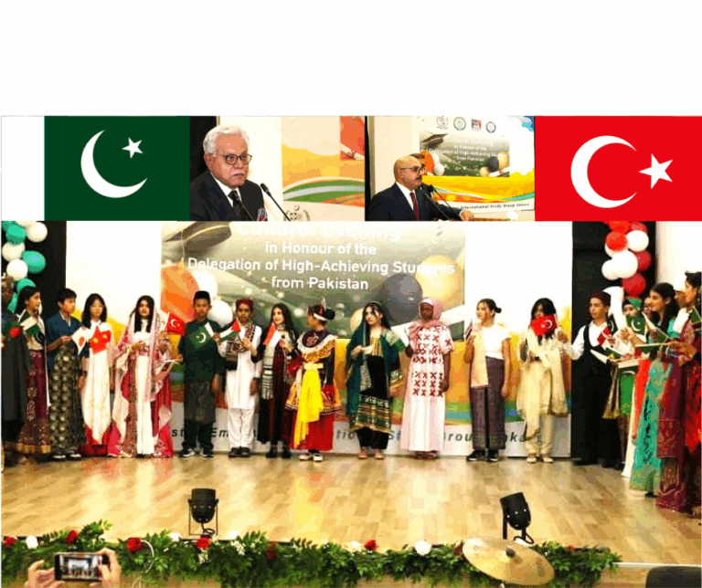 پاکستان ایمبیسی انٹرنیشنل اسٹڈی گروپ (PEISG) کے طلباء نے رنگا رنگ ثقافتی پروگرام پیش کیا، جس میں پاکستان اور ترکیہ کے مشترکہ تاریخی و تہذیبی ورثے کو دلکش انداز میں اجاگر کیا گیا۔