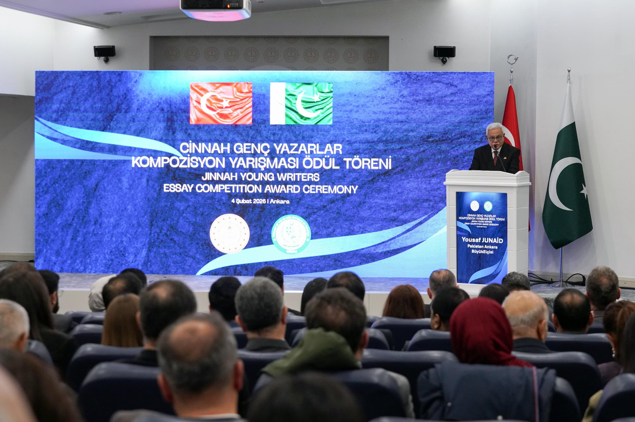 ’جناح ینگ رائٹرز ایوارڈ‘ مضمون نویسی مقابلے کے آٹھویں ایڈیشن کی انعامی تقسیم کی تقریب آج ترکیہ کے دارالحکومت انقرہ میں منعقد ہوئی۔ اس پروقار تقریب میں ترکیہ کی نائب وزیر برائے قومی تعلیم محترمہ جلیلہ ایرن اوکتن اور ترکیہ میں پاکستان کے سفیر ڈاکٹر یوسف جنید نے بطور مہمانِ خصوصی شرکت کی۔